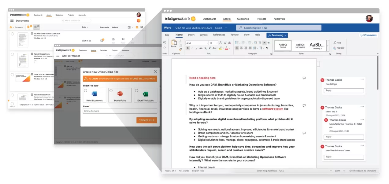 - How multiple users can create and edit Office 365 documents, all within the IntelligenceBank platform.